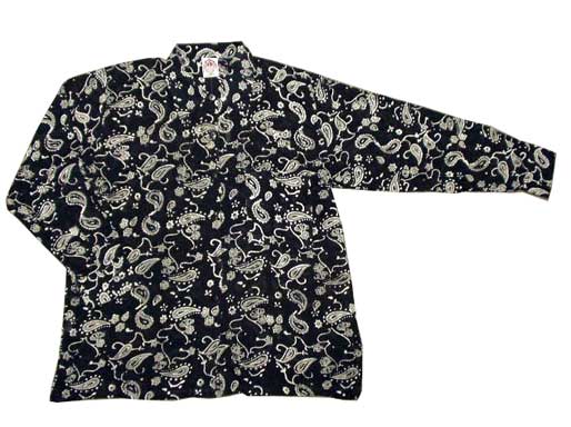 シャツブラウス 型番 SBL001 コットンボイル素材、襟付き前開きシャツブラウスです。ベースの色は、合わせやすい黒。柄のバラエティーは5種類です。 オーバーブラウスでも、タックインでも着られます。